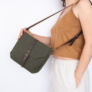 Waxed canvas kumaş çantalarımızı güçlü dikişlerle dikiyoruz.